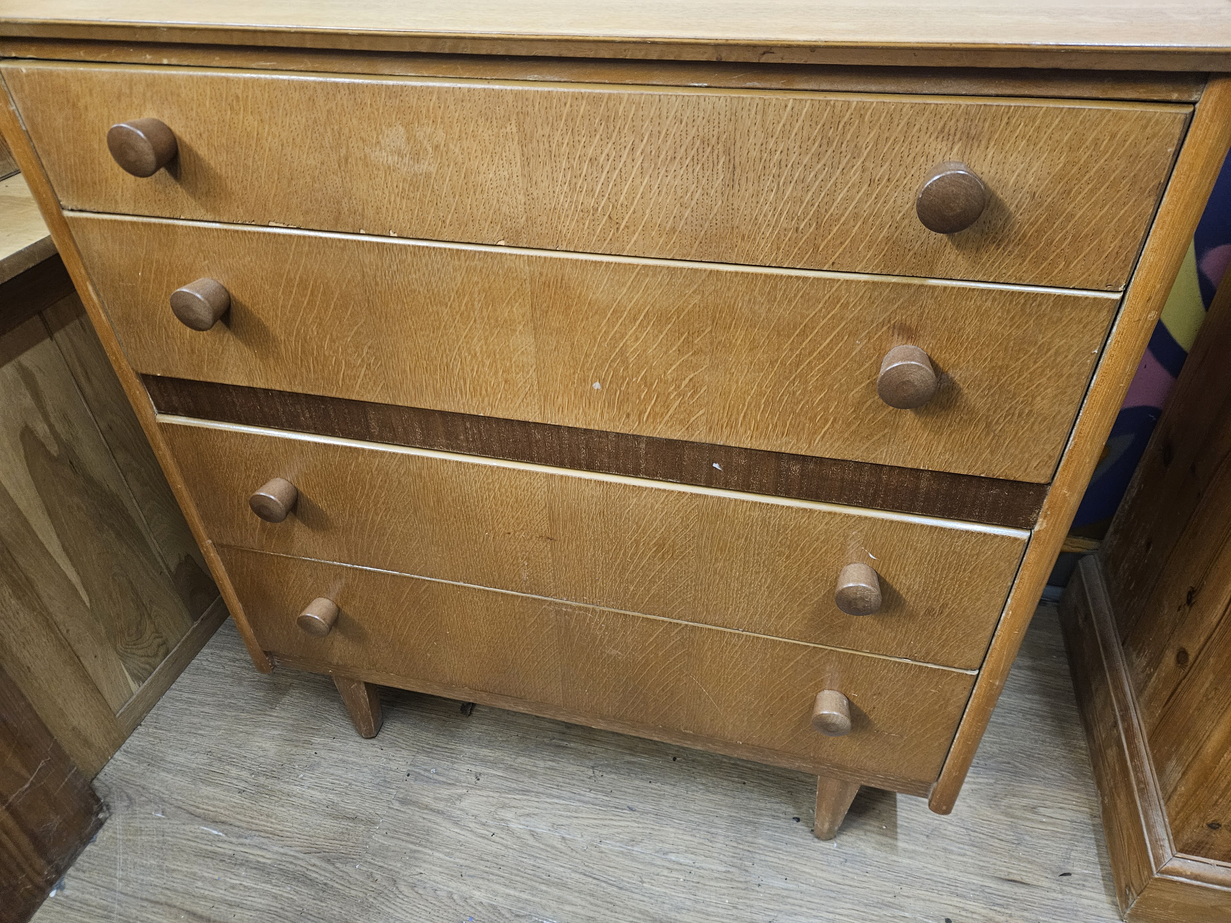 Harris Lebus Mid-Century Oak Veneered Chest of Four Drawers