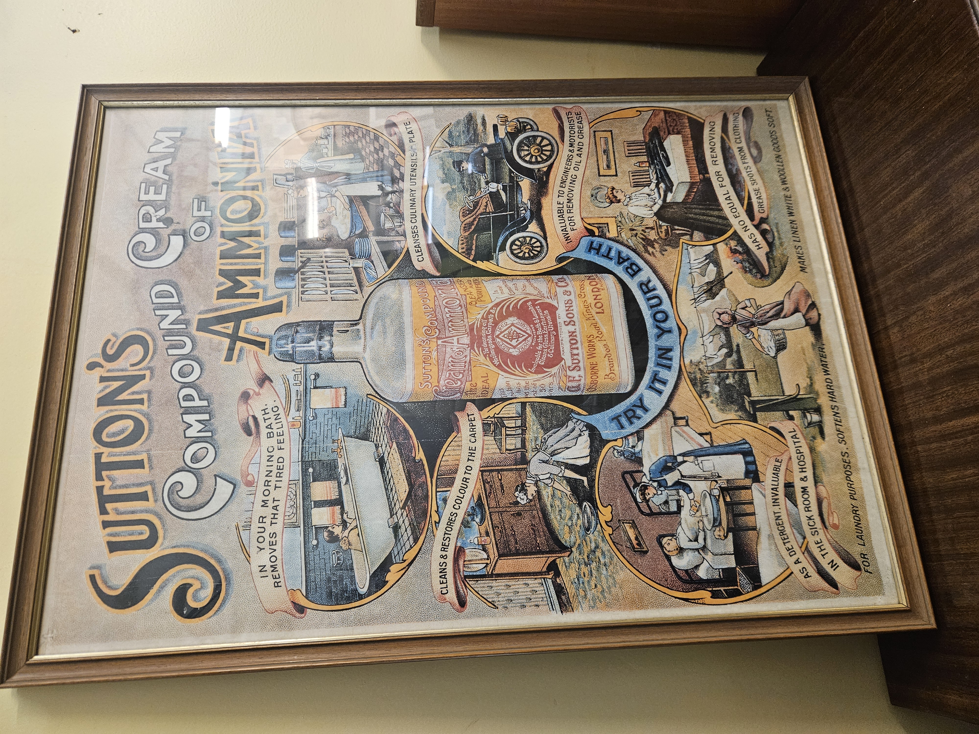 Early 20th Century Framed Advertising Print for Sutton's Compound Cream of Ammonia