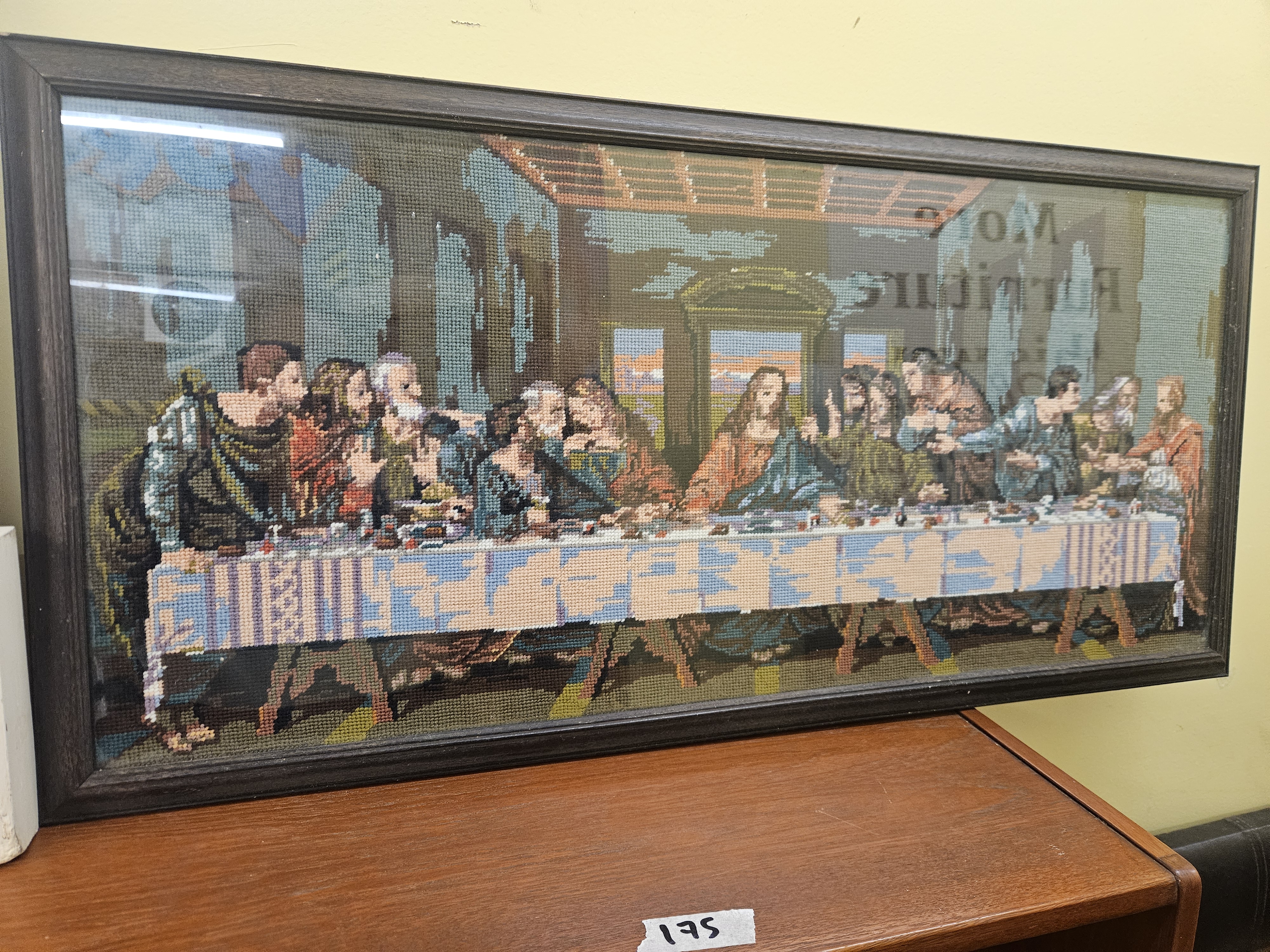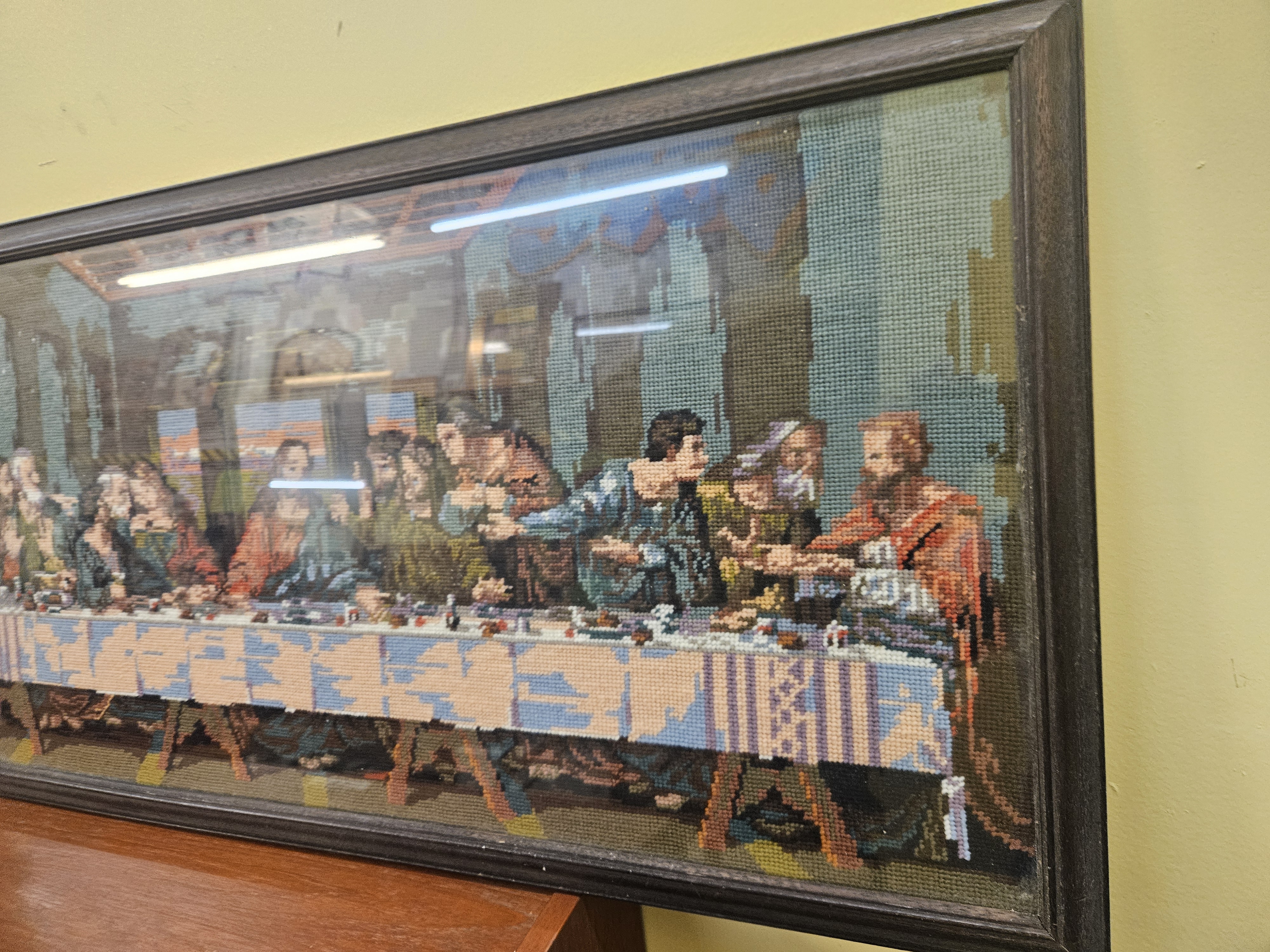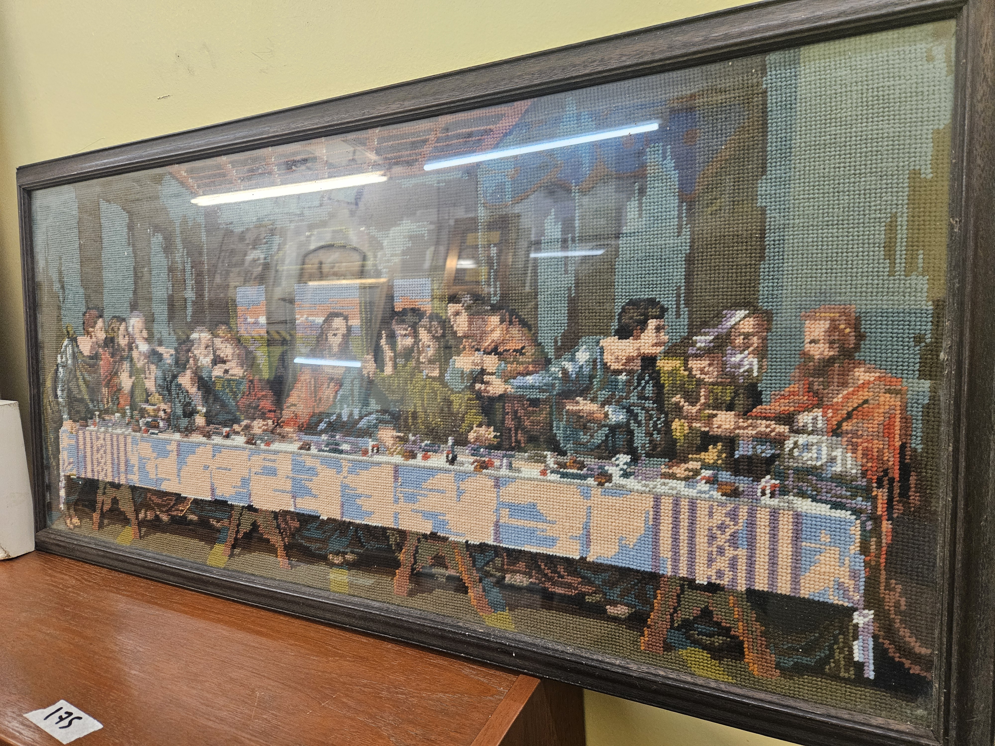 A mid-20th-century framed needlepoint tapestry of The Last Supper after Leonardo da Vinci