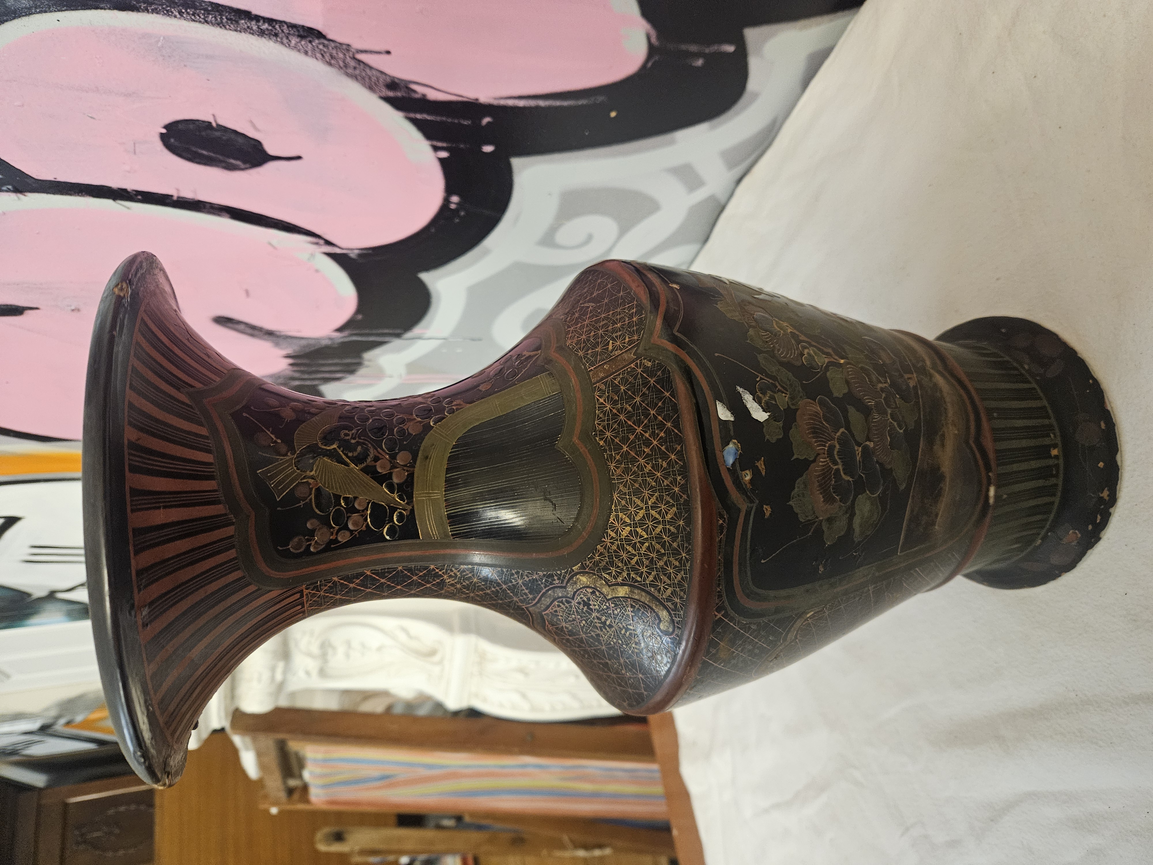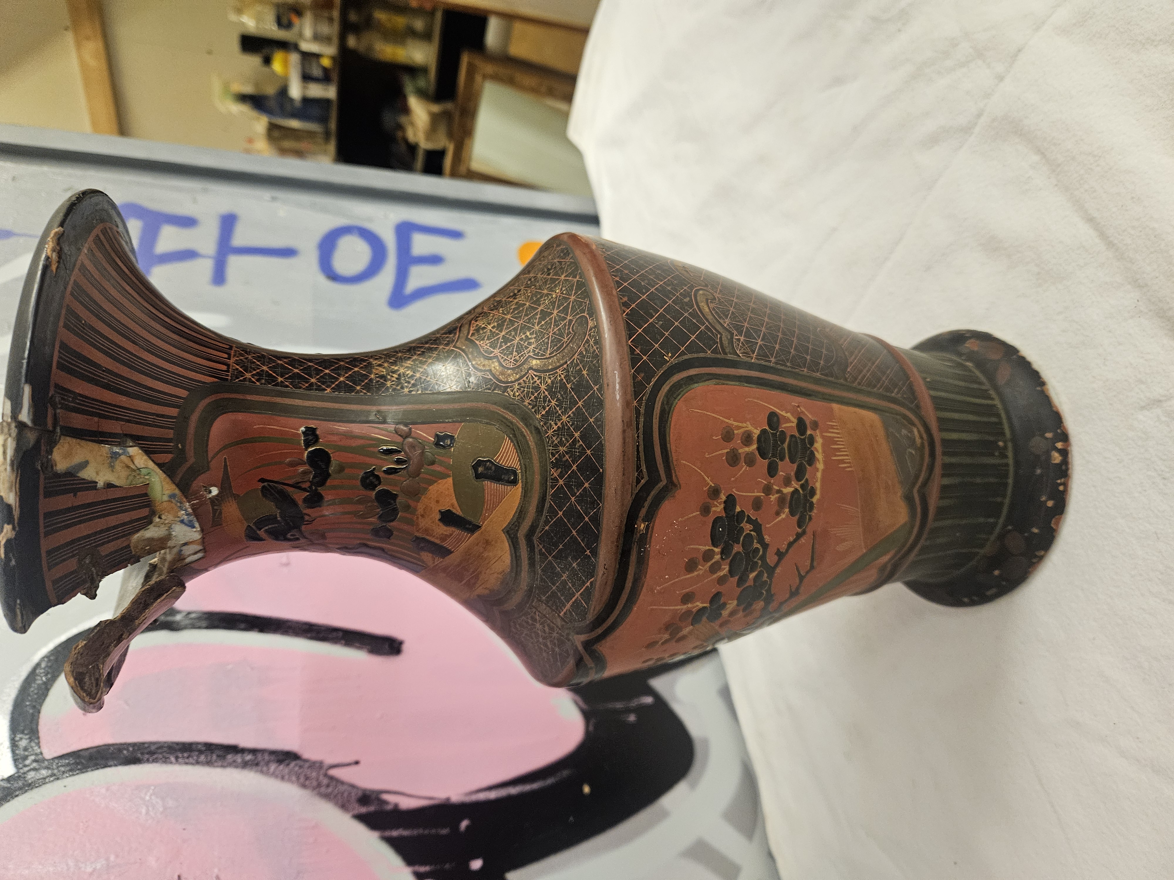 Japanese Meiji Period Lacquered Porcelain Vase by Shinbu of Hizen