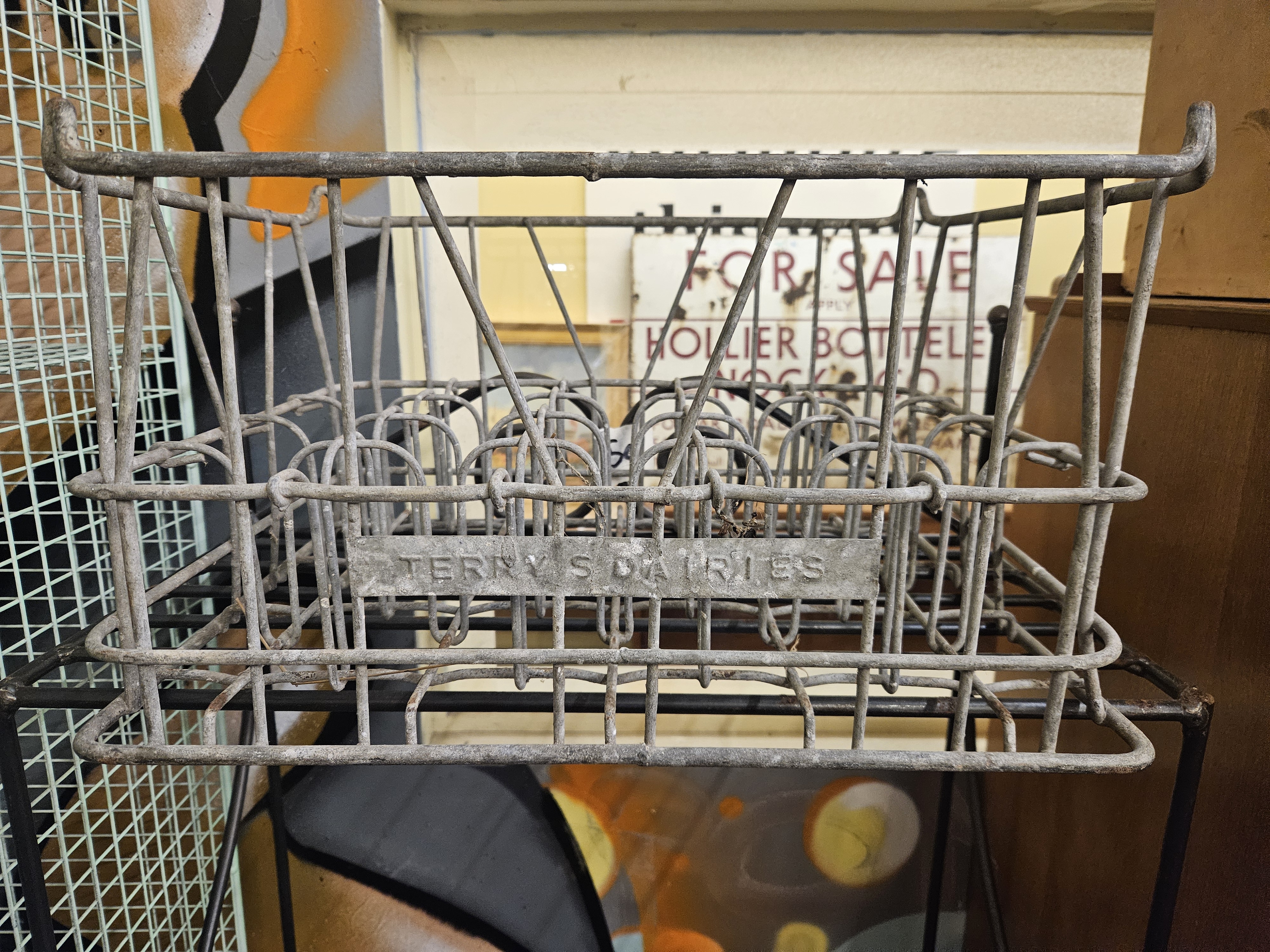 A Vintage Terry's Dairies Galvanised Steel Wire Milk Bottle Crate