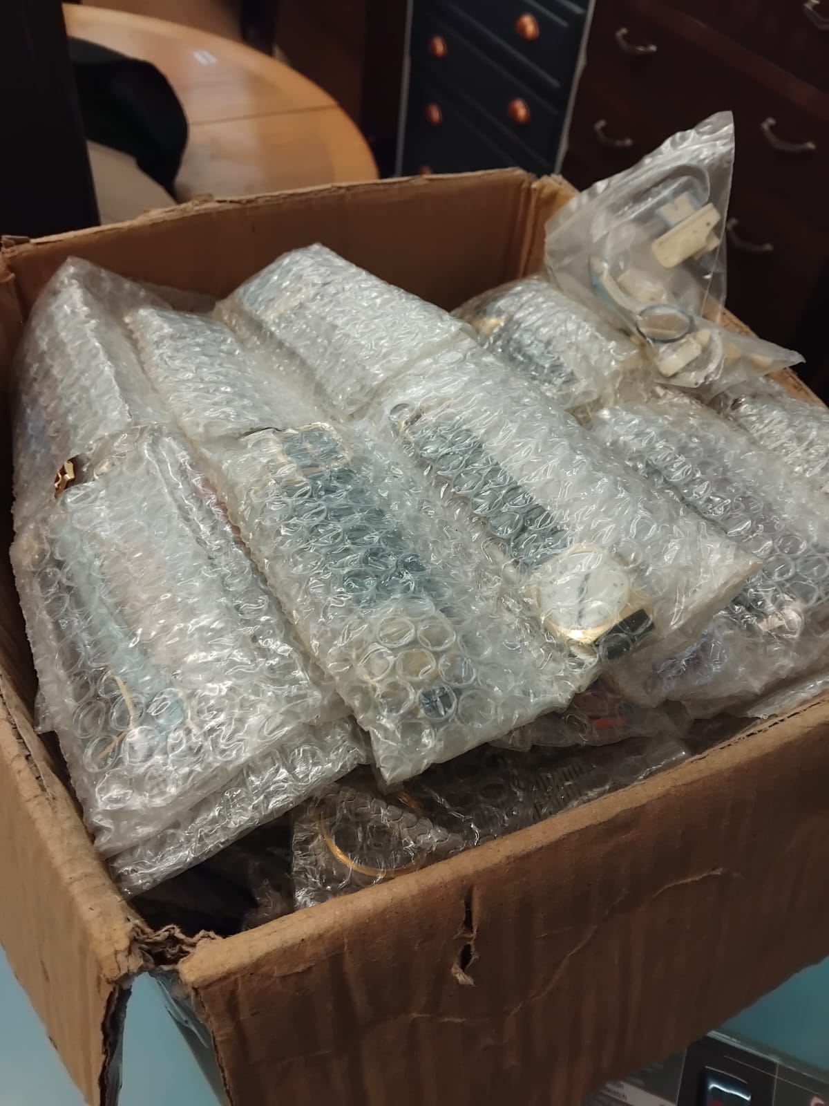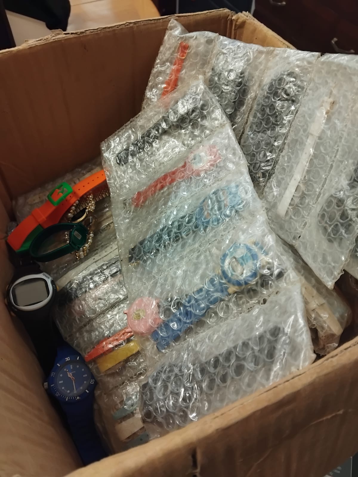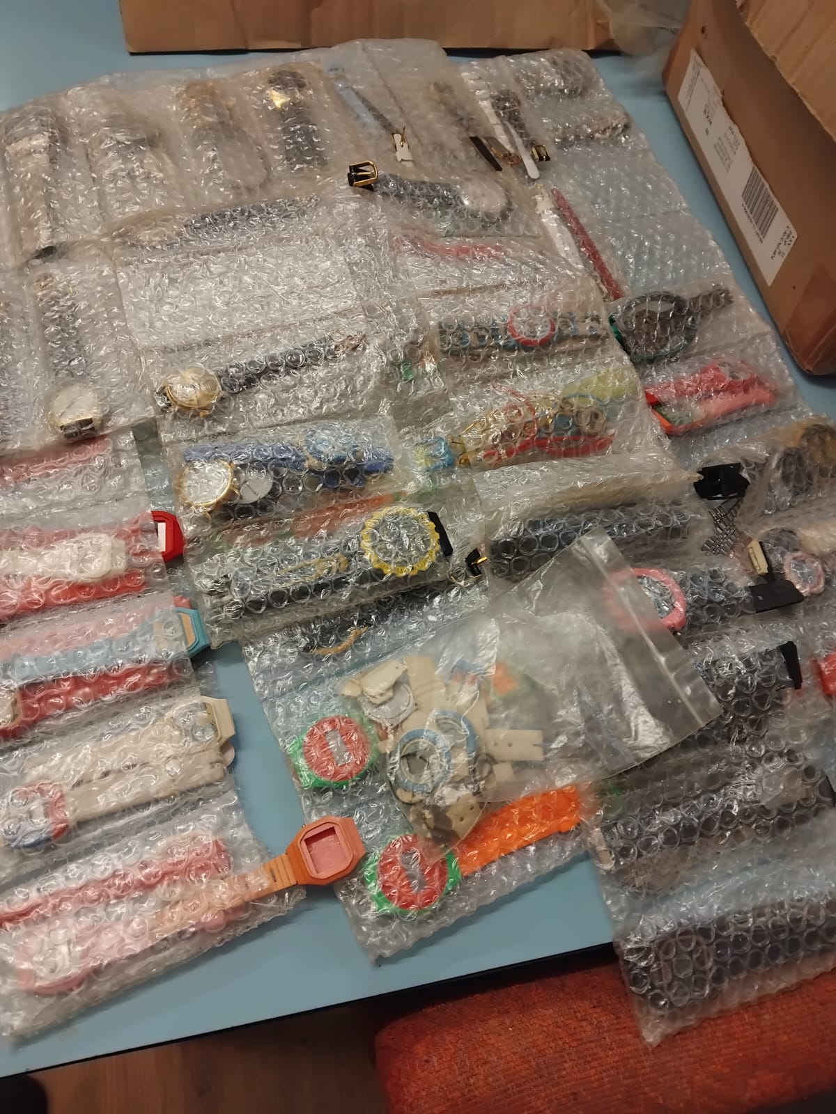 An extensive job lot of over 50 wristwatches, featuring a diverse range of styles and periods. The collection primarily consists of quartz fashion and dress watches from the late 20th century. While multiple marks are present on the dials and case backs, they are not clearly legible through the protective packaging. The assortment includes several items in the style of Pop Swatch and other fashion brands of the 1980s and 1990s. Case materials include plastic, resin, gold-toned base metal, silver-toned base metal, and stainless steel. Dial colours vary widely, featuring white, black, blue, champagne, and various multi-coloured patterned designs. Movements are primarily quartz, with some potential mechanical examples. Attachments include leather straps, integrated plastic and resin bands, and metal link bracelets. The lot includes a small bag of loose components, bezels, and straps.