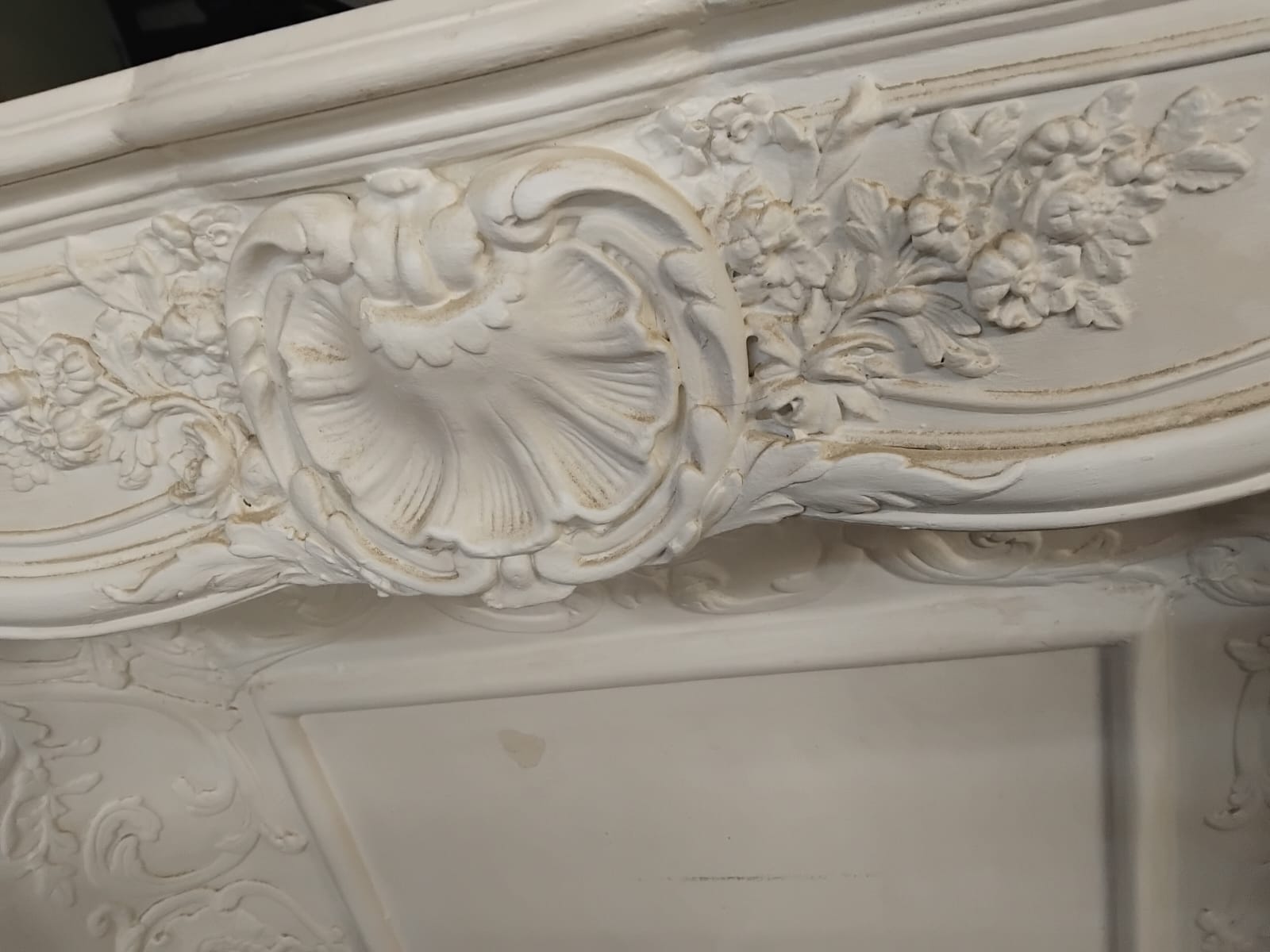 A Rococo Revival Style Cast Plaster Fireplace Mantel and Surround