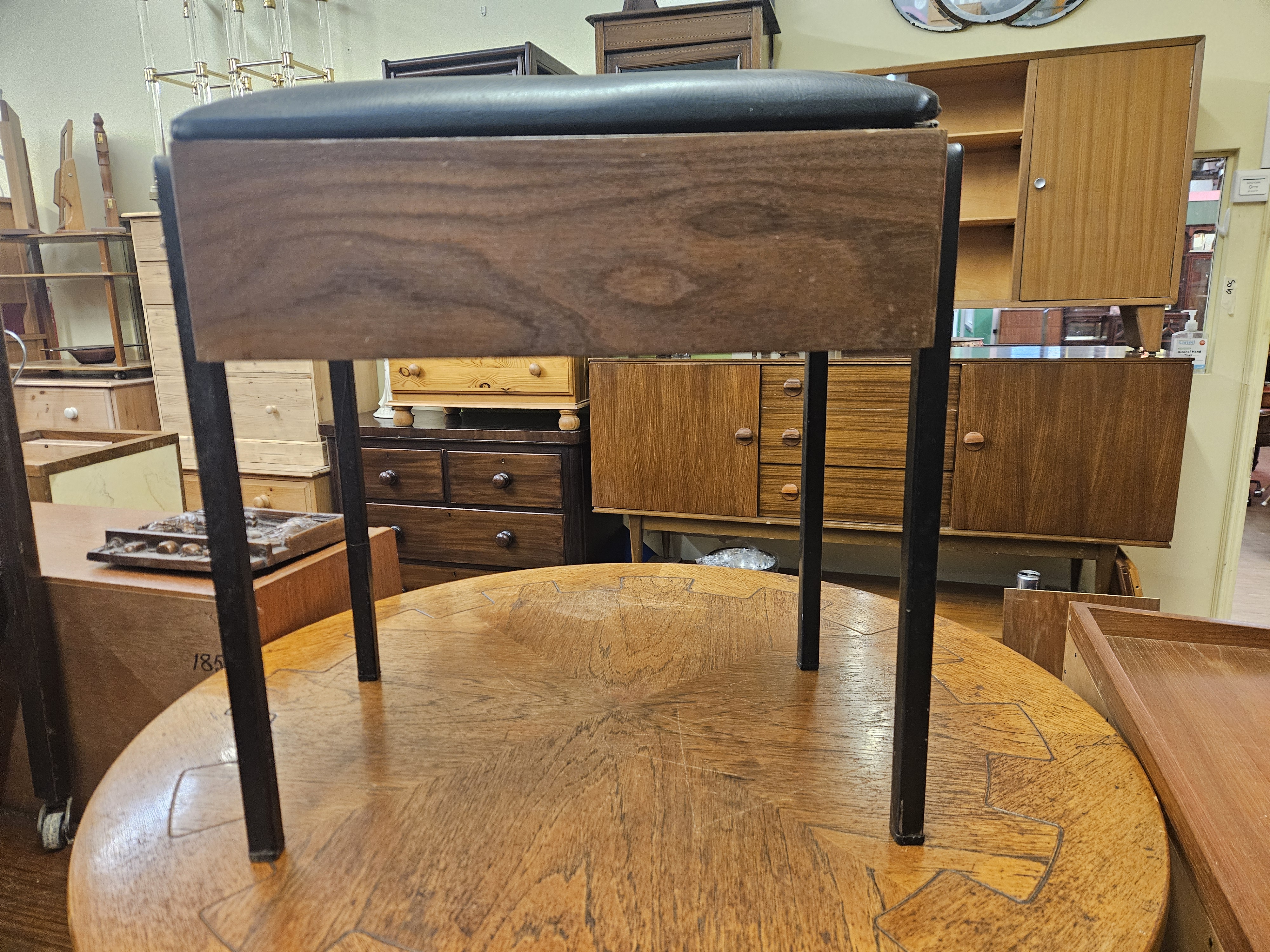 Mid-Century Modern Storage Stool with Metal Frame and Vinyl Seat